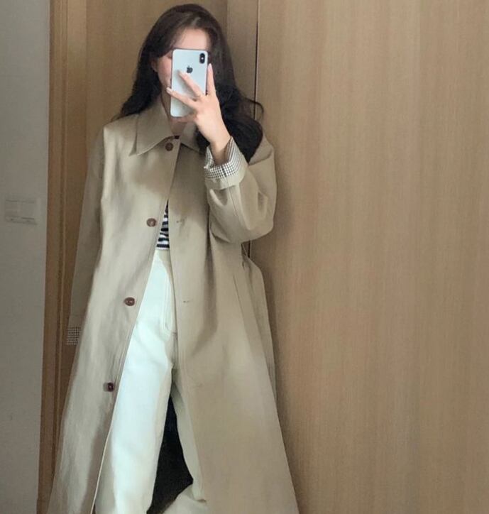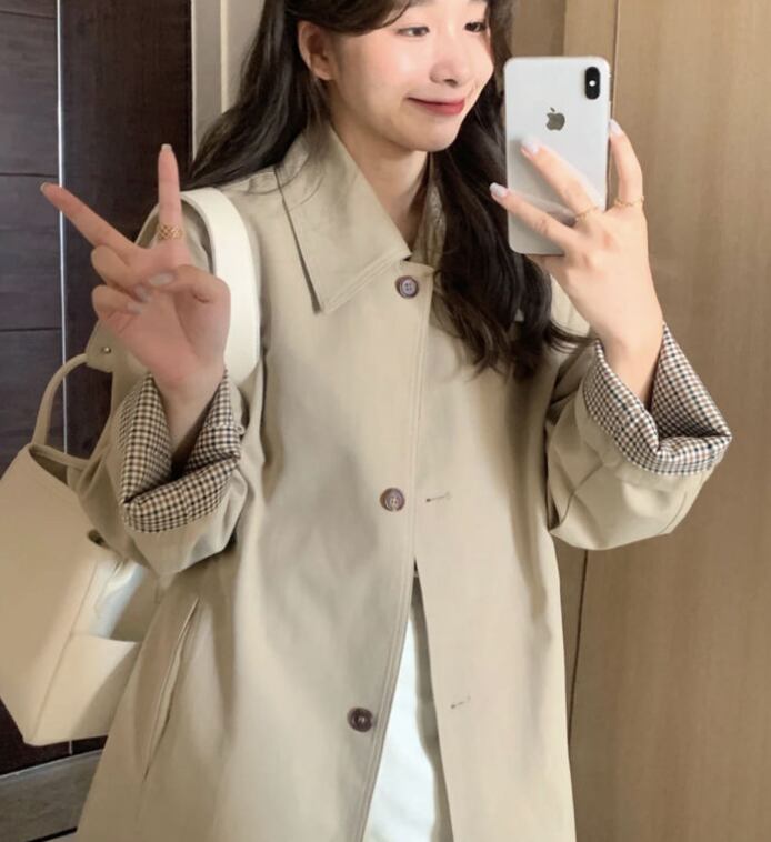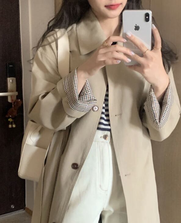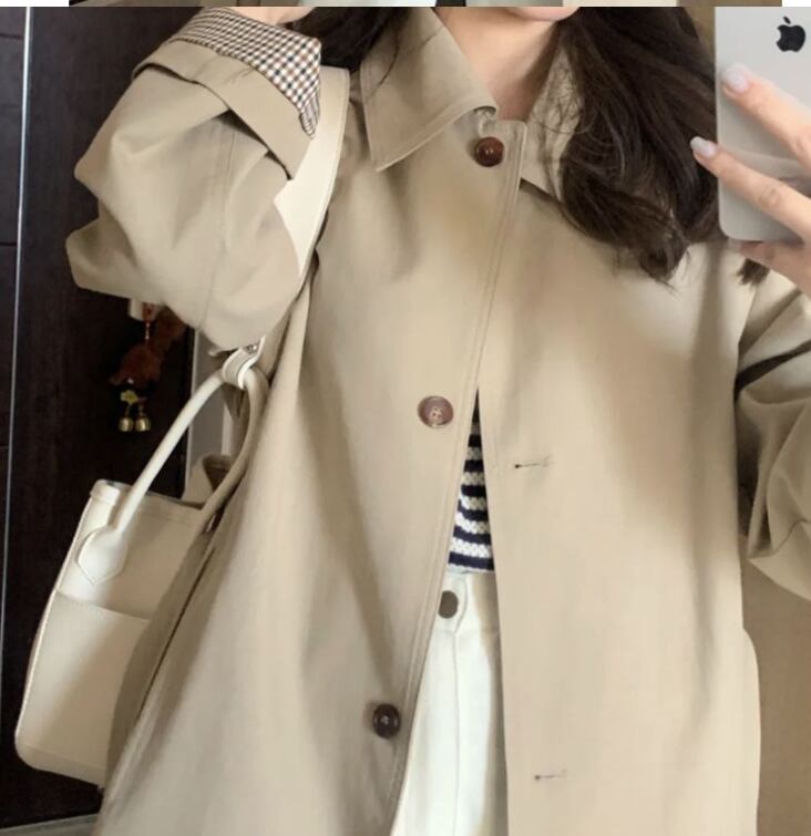 初秋トレンチコートレディース2024春秋新作カーキSサイズ韓国版英国風ミドル丈342