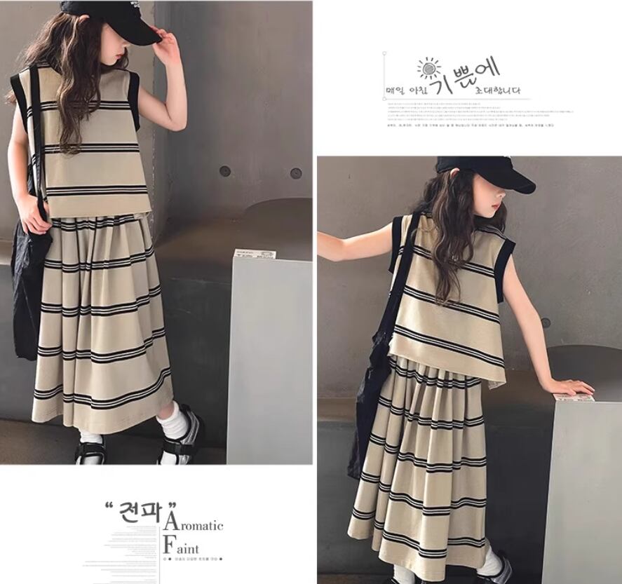 【特徴】この「女の子の夏のスーツ2025ノースリーブの子供のおしゃれな新しい夏服大きな子供のスタイリッシュなベストワイドレッグパンツ338」は、夏の季節にぴったりな明るく可愛いスタイルを演出するアイテムです!ノースリーブデザインは、暑い日でも快適に過ごせるため、元気いっぱいの女の子に最適です。