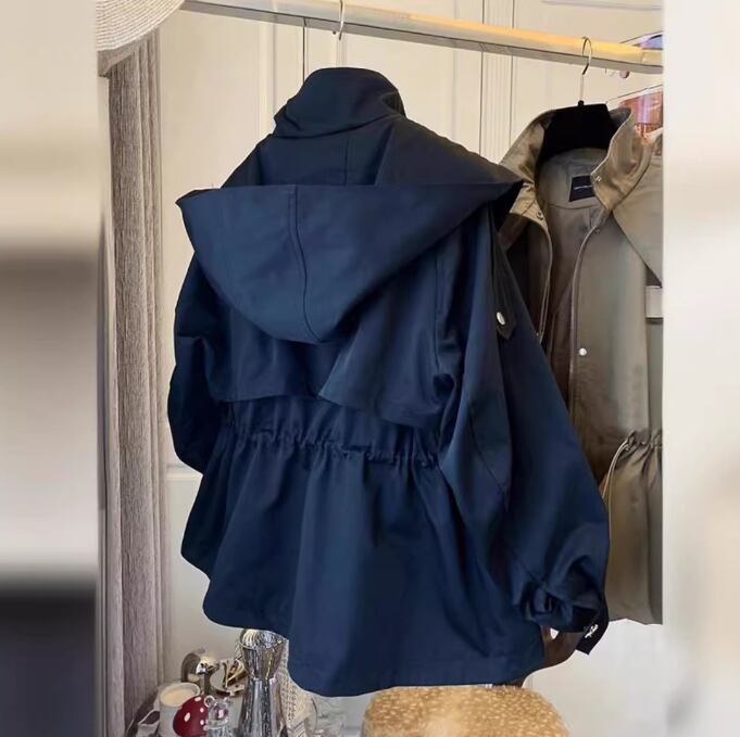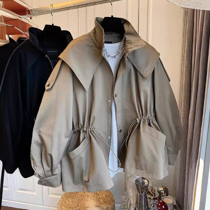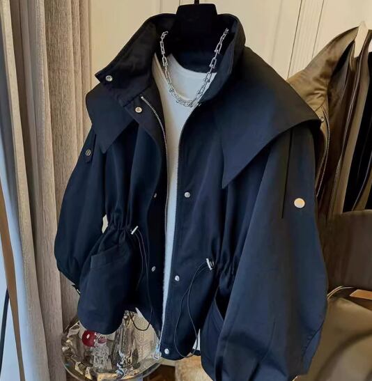 ニッチなゆったりとしたカジュアルなドローストリングウエストワークウェアウィンドブレーカージャケットレディース春と秋のショートスタイル355