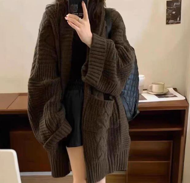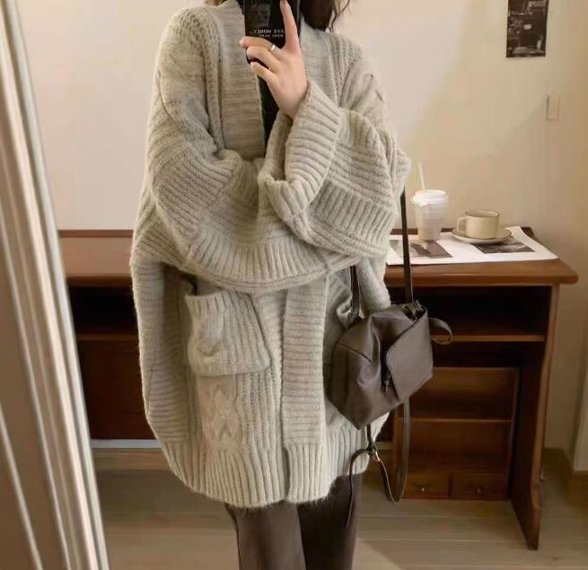 セータージャケットレディース2024新しいレイジースタイルのルーズニットセーターミディアムとロング厚手カーディガンレディース358