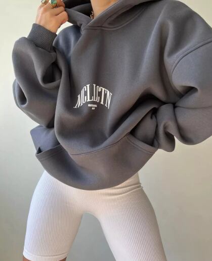 カジュアルファッションレタープリントeBayトップ長袖フード付きスウェットシャツ女綿100%、320グラム360
