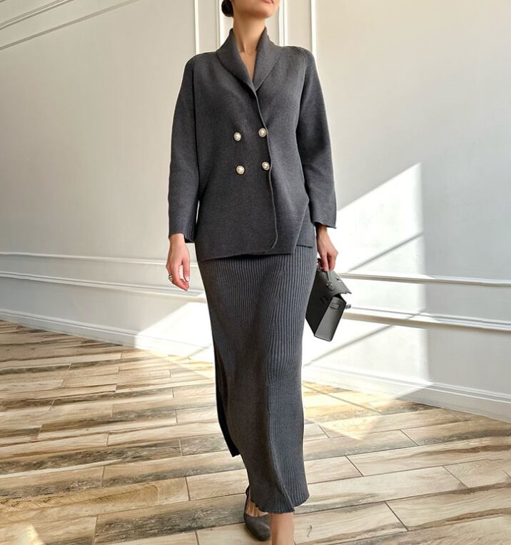 婦人服無地長袖ボタンジャケットスカートファッションスーツ367