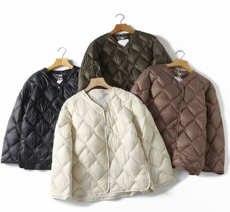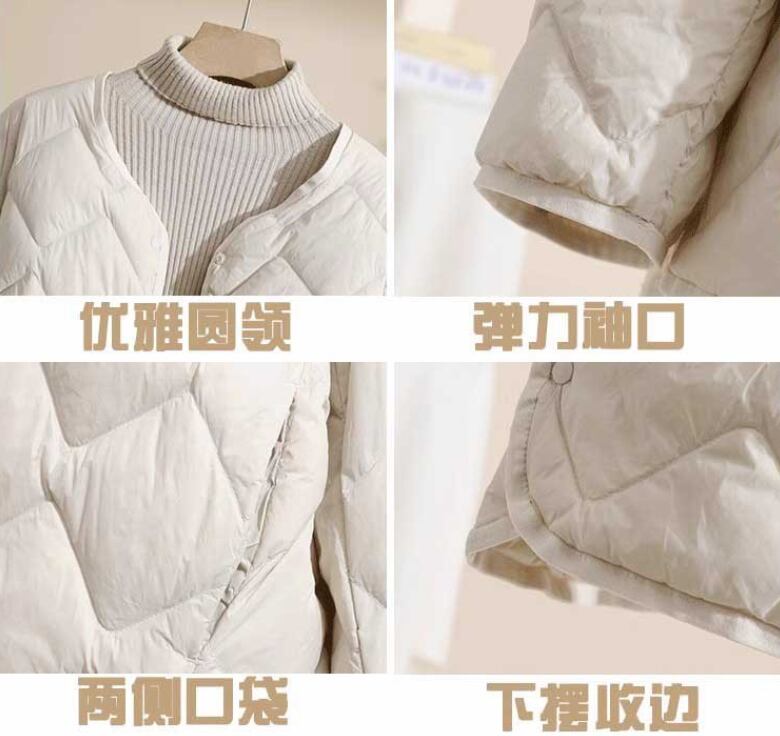 高級軽量ダウンジャケットレディースショート薄手裏地秋冬ラウンドネックカジュアルジャケット381