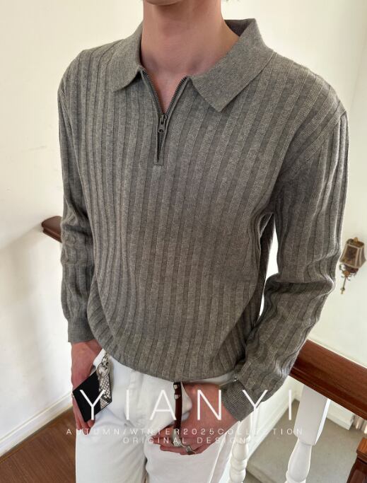 秋のオールドマネースタイルレトロカジュアル通勤厚手ストライプラペルポロセータートップス男女兼用396