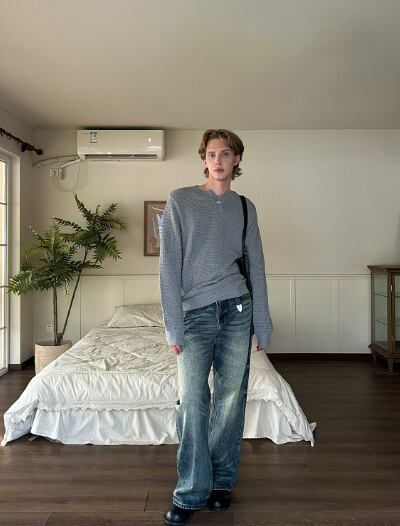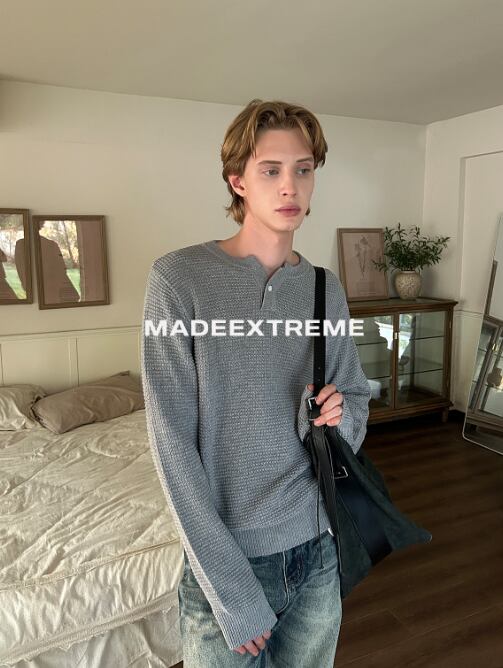 ワッフル素材を使用しているため、肌触りが良く、温かみのある着心地。Vネックデザインが顔周りをすっきりと見せ、ヘンリーカラーがちょっとしたアクセントを加えます。ゆったりしたシルエットでリラックス感があり、普段使いからお出かけにも幅広く活躍することでしょう。シンプルながらも存在感ある一着で、あなたのファッションにトレンド感をプラスします!