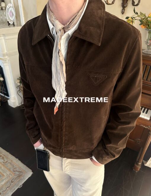 イミテーション牛スエードレトロジャケットアンバーストリーマーラペルスエード風25秋冬ストレートショルダーオールドマネージャケット男399