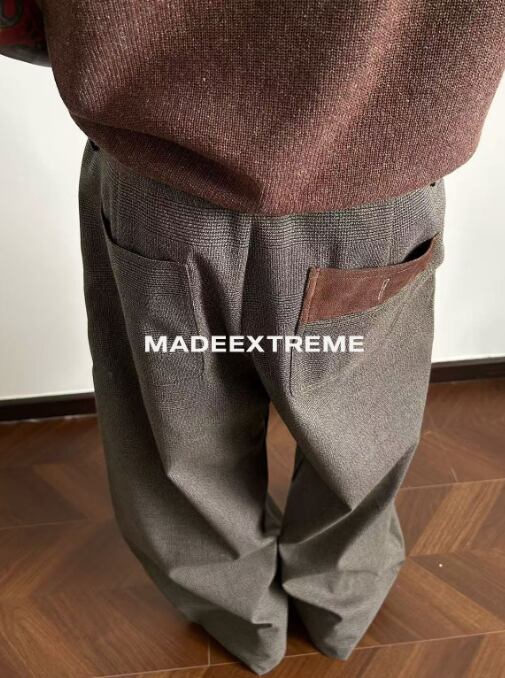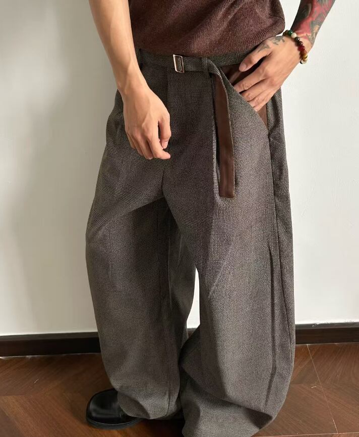 レトロ 千鳥格子 プリーツ ステッチ オールドマネー カジュアル ストレート ルーズ コントラスト トラウザーズ ドレープ トラウザーズ400