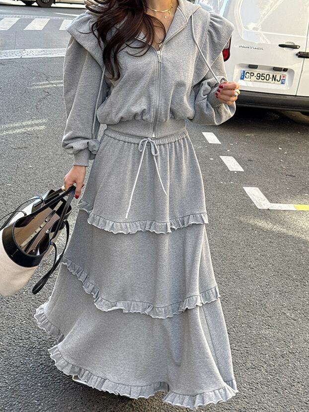 【特徴】この「韓国風のエレガントなフード付きスウェットシャツドレススーツ405」は、毎日のコーディネートを華やかに彩るアイテムです!フード付きのデザインは、カジュアルさとエレガントさを兼ね備え、どんなシーンにもぴったりです。