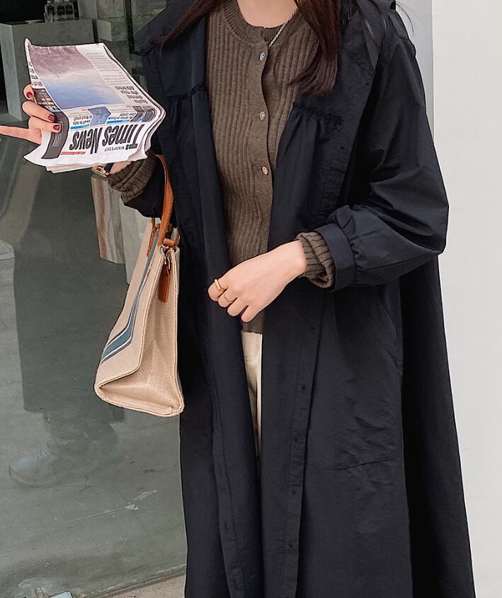 スポットリアルショットの韓国風シックなシングルブレストカジュアル無地ルーズフード付き長袖ドレスジャケット412