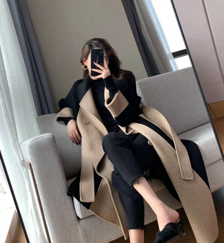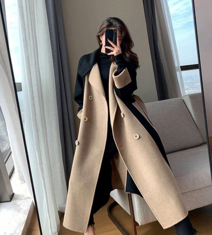 新作ハイエンド気質スリムコントラストカラーウールコートレディース443