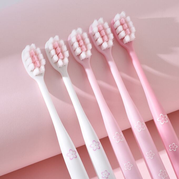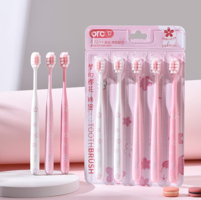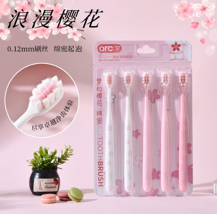 お得10本パックオーク 桜 歯ブラシ 大人用 角穴 柔らかい毛 効率的な洗浄 ピンク 女子学生用 小型ヘッド 歯ブラシ 卸売460