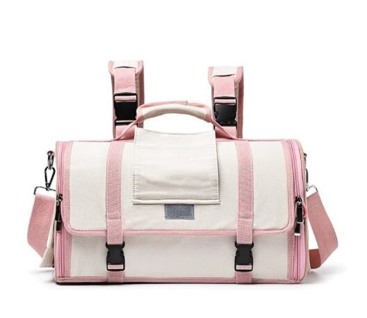 バックパックスタイルとハンドバッグスタイルの両方で使用できるため、シーンに応じた使い方が可能です。両肩が楽になる調整可能なストラップが付いており、使いやすさと快適さを追求しました。このバッグを使えば、大切なペットとの特別な旅行がより楽しいものになることでしょう!