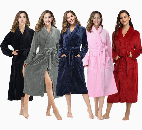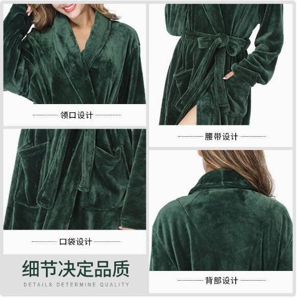 クロスボーダーラペル無地ローブバスローブ秋冬厚手パジャマロン548