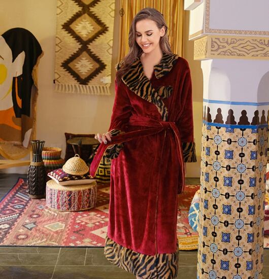 秋冬ファッション軽量高級個性高級ナイトガウンヒョウ柄ワインレッドフ551