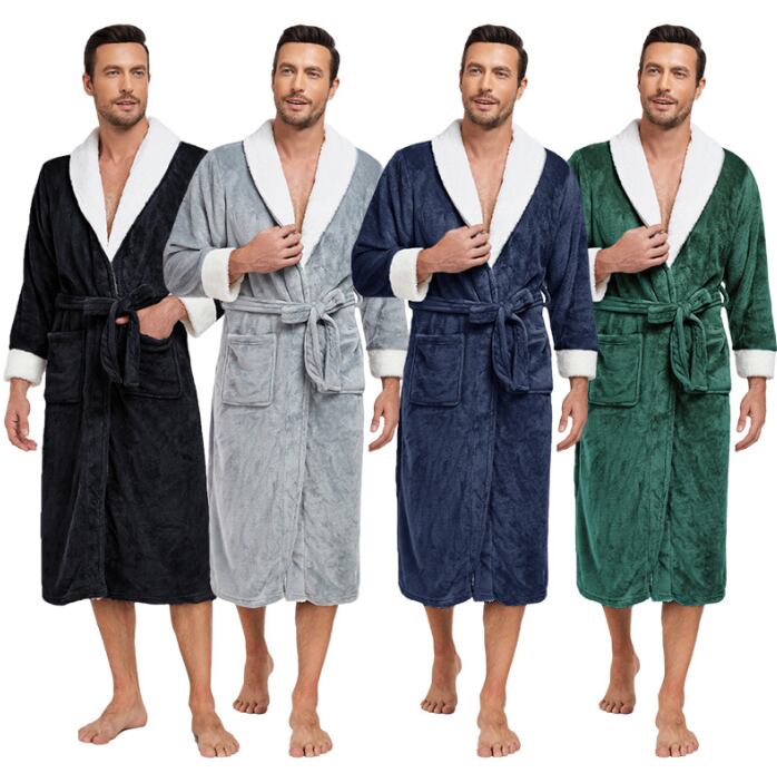 クロスボーダーメンズカラーラペルローブフランネルロングバスローブホーム服ホテル秋冬パジャマカップルバスローブ550