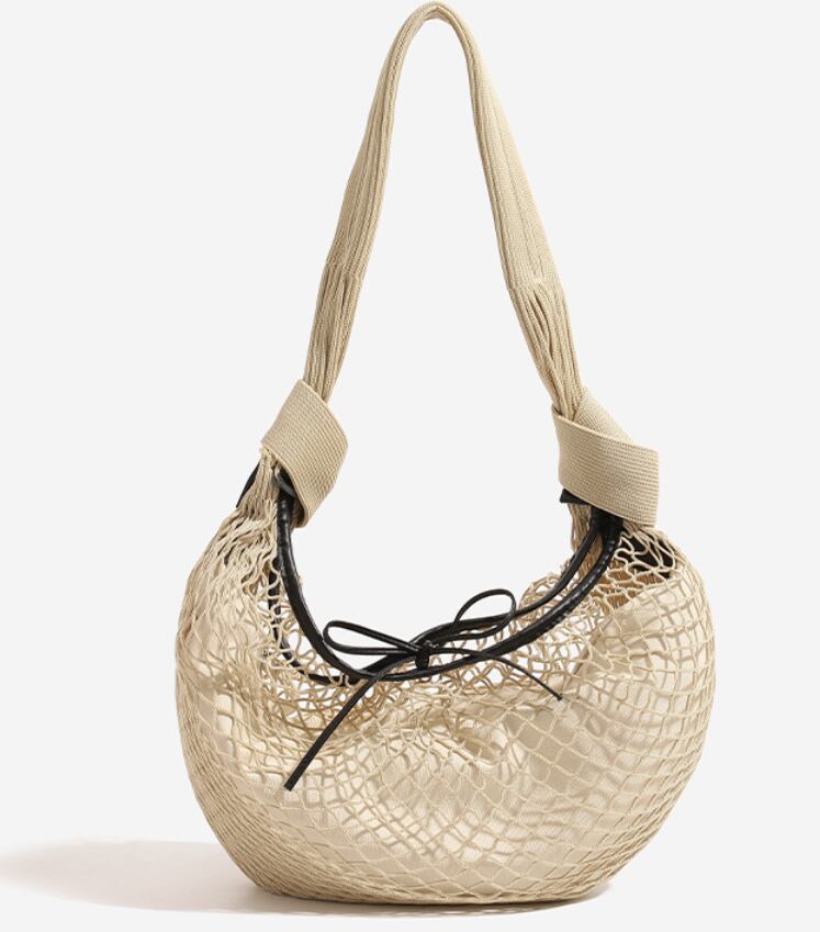 ビーチバケーションコントラストカラーネットバッグクロワッサンバッグレディー571