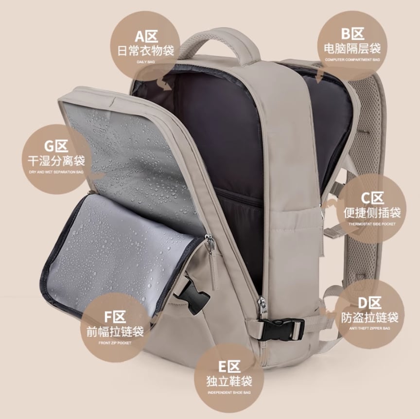 メンズ旅行用バックパック、軽量ショルダーバッグ、ポータブル旅行用荷物バッグ、大容量のノートパソコン用バックパック578