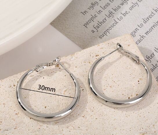 シルバーニードルラウンドプレーンフープイヤリング - ミニマリストスタイル、軽やかな高級感、ハイエンドなレディースイヤリング595