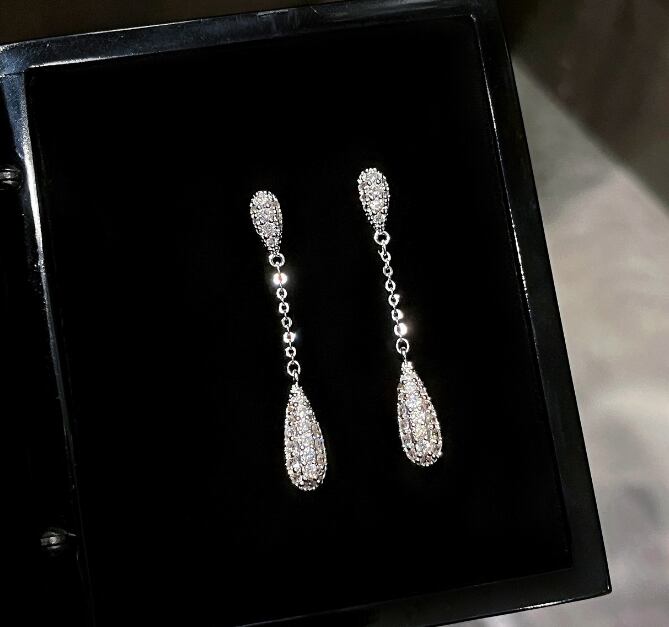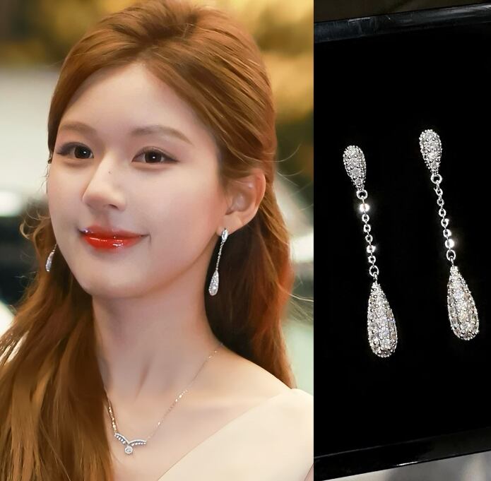 趙魯思のシルバーニードルジルコニアティアドロップイヤリング:贅沢で万能なファッショナブルなスタッドイヤリング603