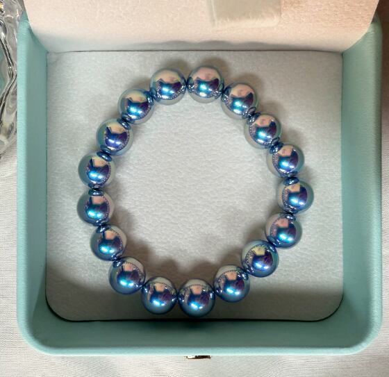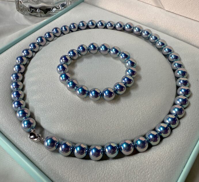 【カラー】鮮やかなブルーの10mmの45cmネックレス、17cmのブレスレット、非常に厚く、虹色の青、10mm