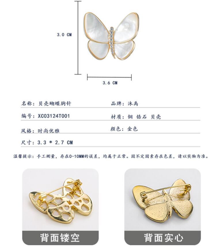 お得2個セット高級でエレガント、洗練された蝶のブローチ、絶妙なスーツのコサージュアクセサリー、天然の螺鈿のブローチボタン617