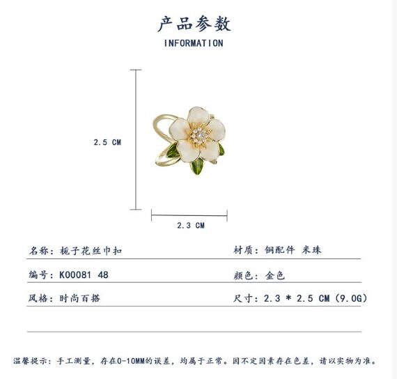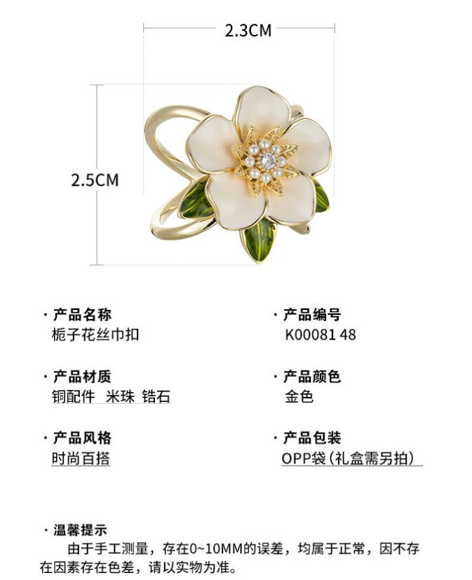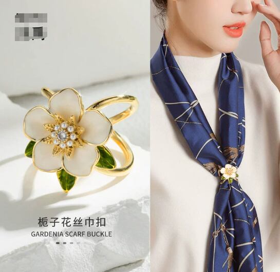 ニッチな高級クチナシのスカーフクリップ、新しいスタイル、オイルを垂らす、空気のような花のスクエアスカーフクリップ衣類コーナークリップ621