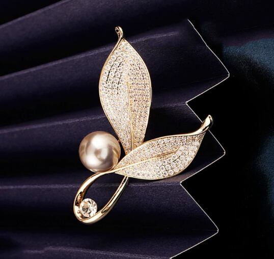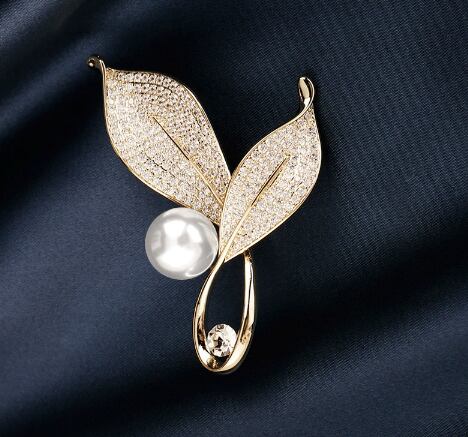 お得2件新作レディースローズマリーブローチ、高級パールコサージュ、露出防止、スーツスタイル、シャネル風アクセサリー624