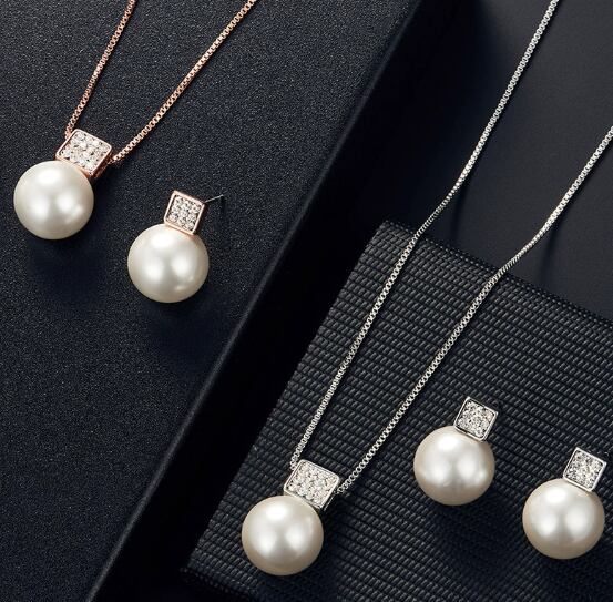 女性用の万能なスクエア パールのイヤリングとネックレスのセット。ラインストーンで装飾された、贅沢で高級なイヤリングとペンダント。卸売ジュエリー626
