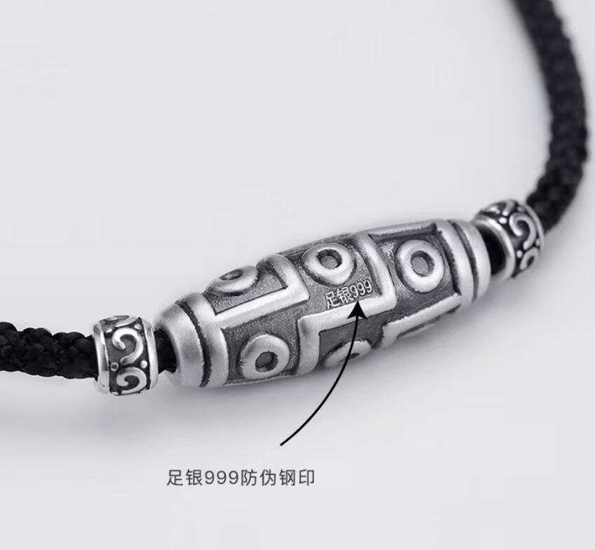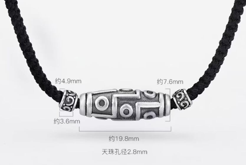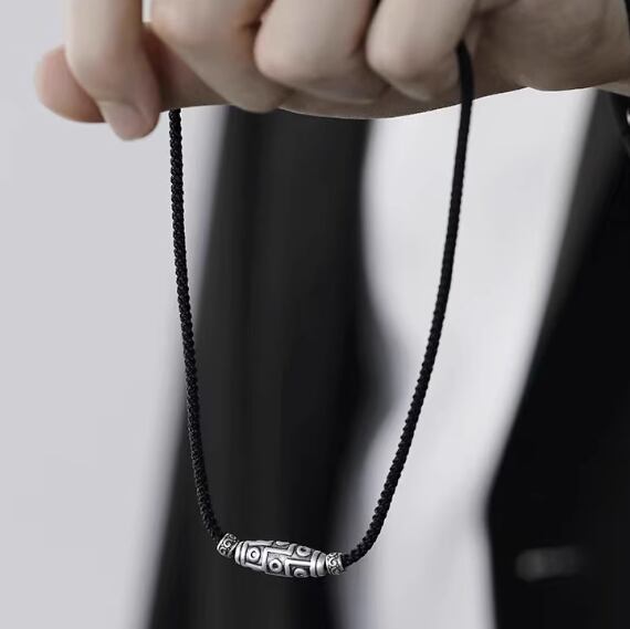 九眼Dziビーズ スターリングシルバーネックレス メンズ - ラグジュアリー、ニッチ、ハイエンド649