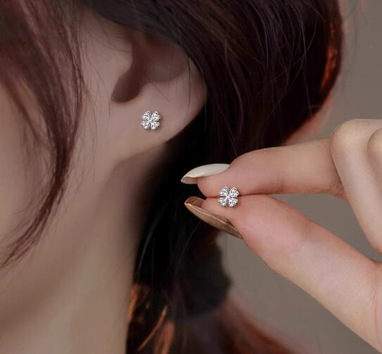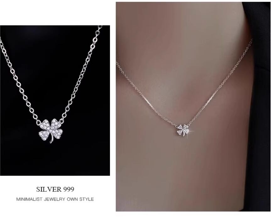 幸運の四つ葉のクローバー999 スターリング シルバー ネックレスイヤリングセット - シンプルで万能655