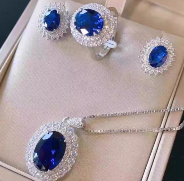 サファイアセット、リング、ネックレス、イヤリング、3点セット、タンザナイト、ヨーロッパとアメリカのハイエンドの光の高級レディース660