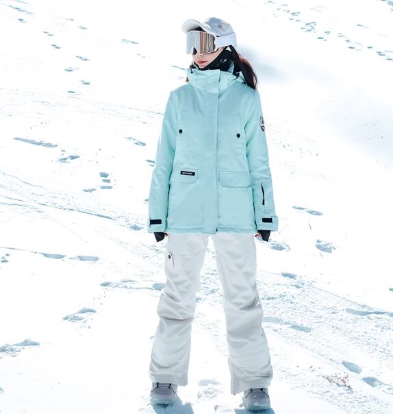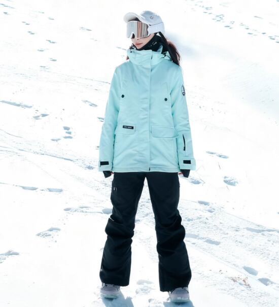 トレンディなレディーススキースーツ冬スタイル、防風、防水、暖かい、アウトドア用厚手スキースーツセット683