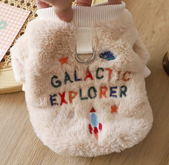リード付き犬用冬服、ふわふわプルオーバーセーター、マルチーズ犬用スタイリッシュなラウンドネックコットンコート699