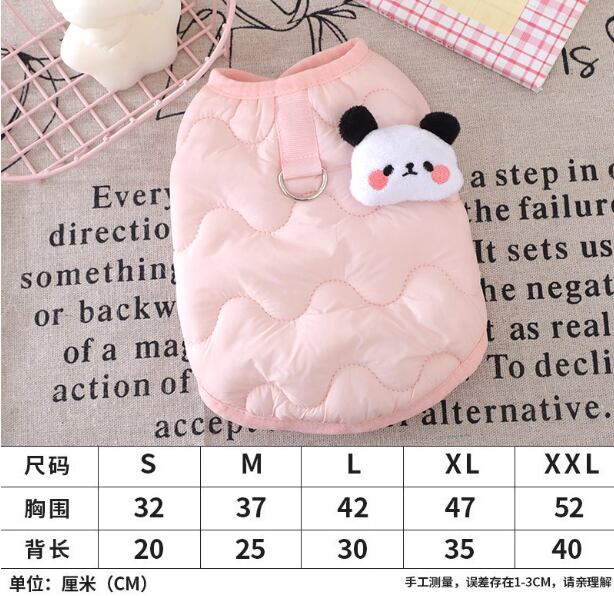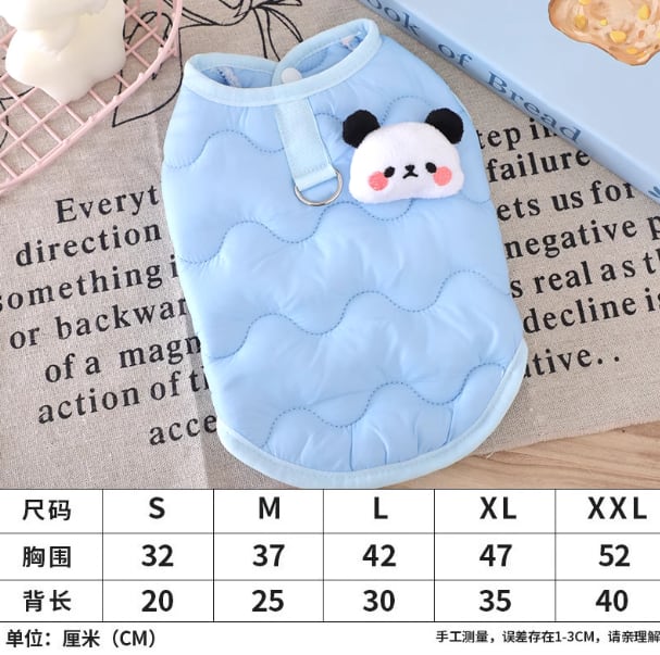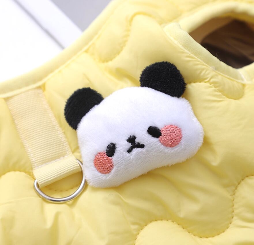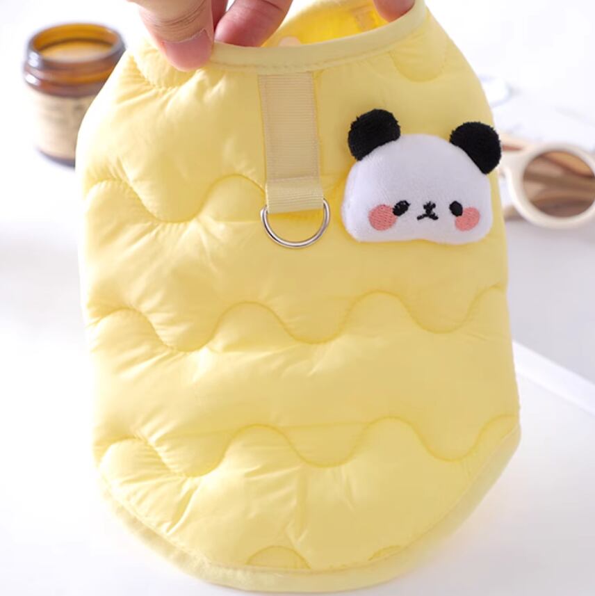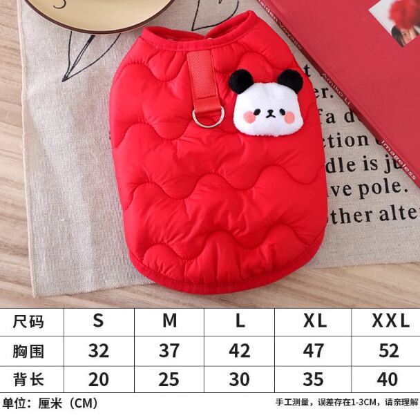 子犬、小型犬、ビションフリーゼ用の新しい秋服、暖かいフリース裏地付き、リード対応のパンダ柄コットンベスト710
