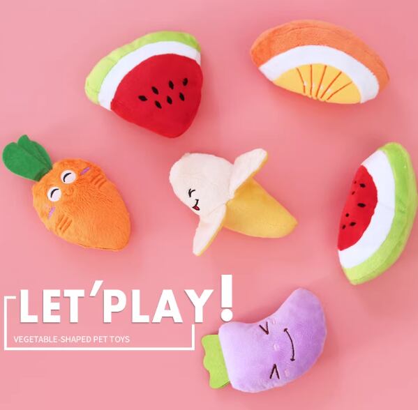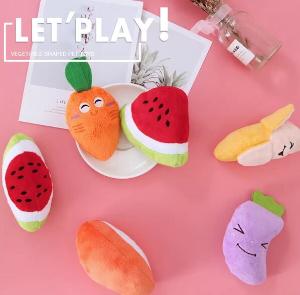 お得6個セット犬のおもちゃ、テディベアのペットのおもちゃ、きしむおもちゃ、小型犬のおもちゃ、プードル、ポメラニアン、果物と野菜のぬいぐるみ
