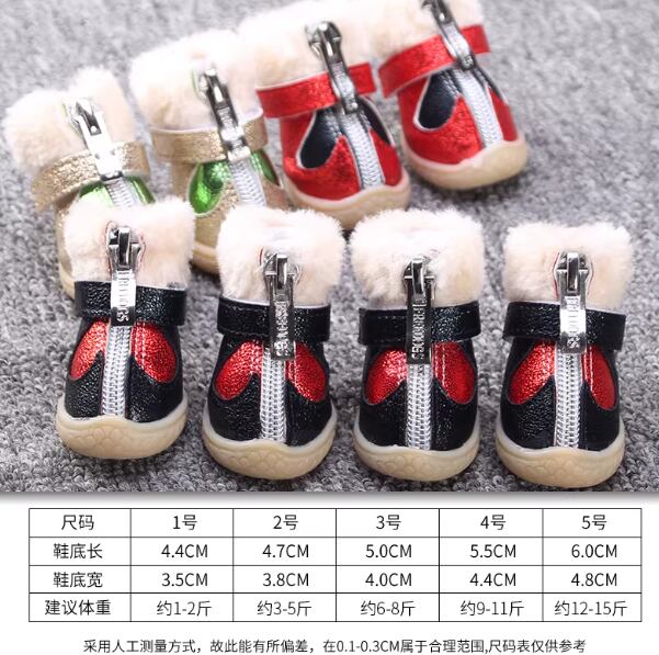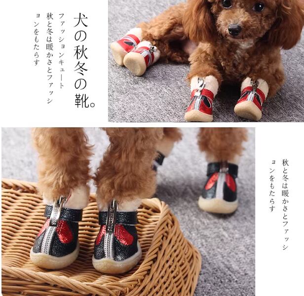 犬用靴 4足セット、冬スタイル、テディ ビション フリーゼ ウォーキングシューズ、滑り止め、秋スタイル、フリース裏地726