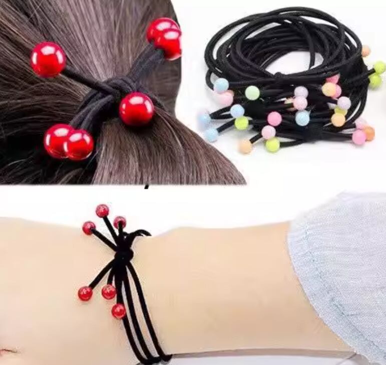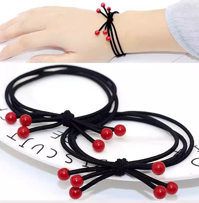 お得セットヘア タイ、ゴムバンド、ヘア タイ、子供用の赤いビーズのヘア タイ、大人用の万能743