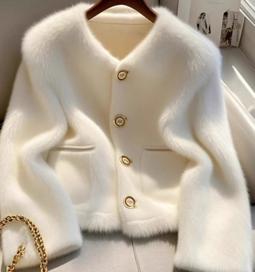 新作の秋冬スタイルのワンピースファーコート。個性的で美しい、上品なシャネ757
