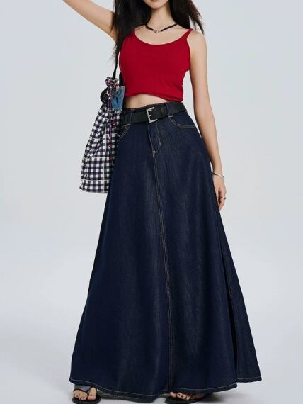 ブルーのレトロなデニム素材は、秋の柔らかな陽射しに映え、カジュアルでありながら chicな魅力を引き立てます。さまざまなトップスとの相性が良く、デイリースタイルからお出かけスタイルまで幅広いシーンで活躍すること間違いなしです。このスカートを取り入れて、初秋のファッションを存分に楽しんでみませんか?