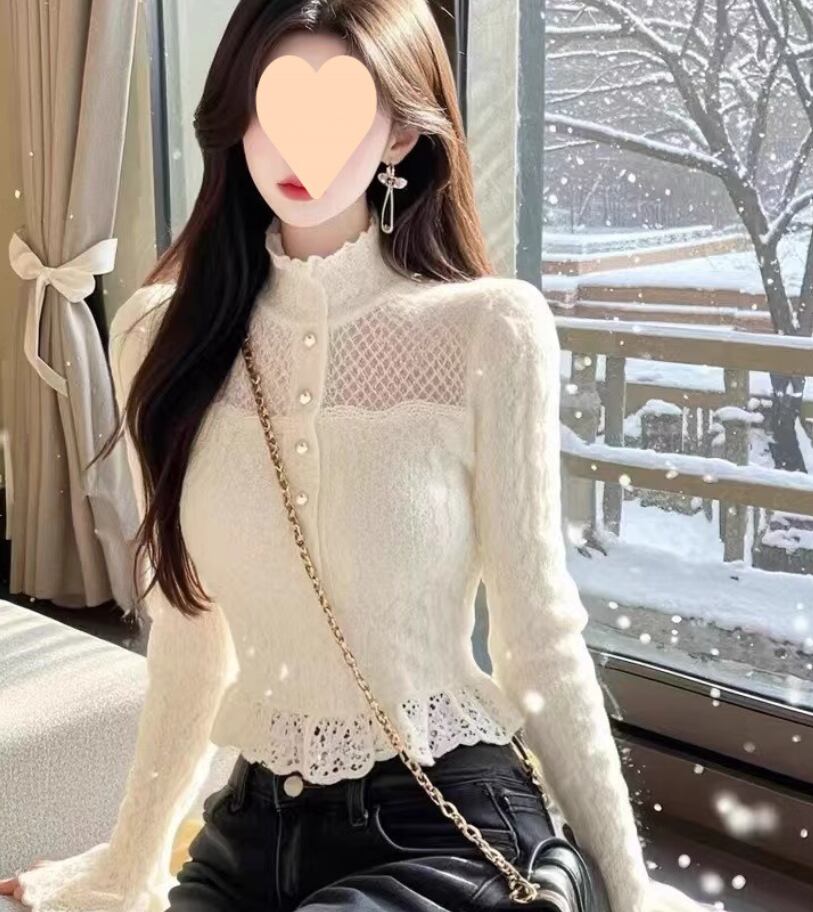 フレンチスタイルのユニークなレースのベースレイヤートップ秋冬765