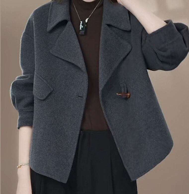 小柄な女性のためのショート丈の厚手ウールコート787