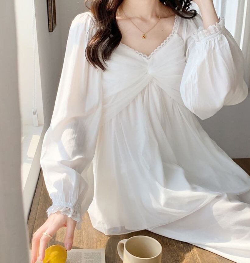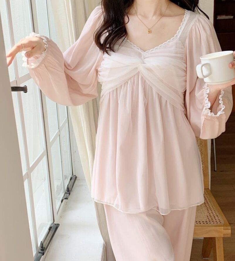 甘くて可愛いプリンセス風のメッシュパジャマ、秋の新作、春秋用のリボン結び786