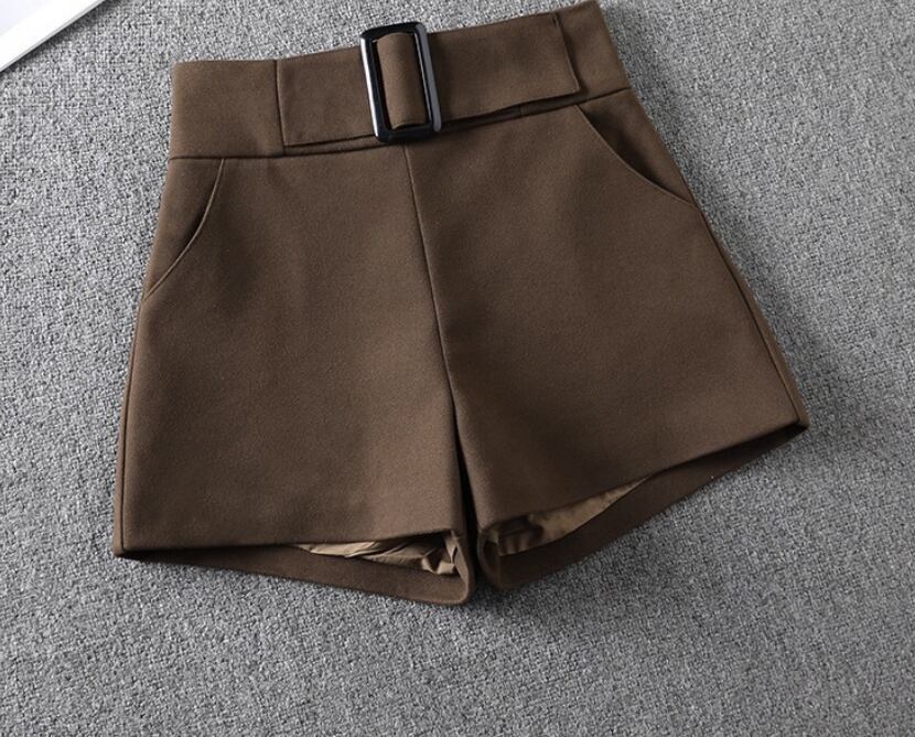 レディースブラックウールショートパンツ、秋冬スタイル792