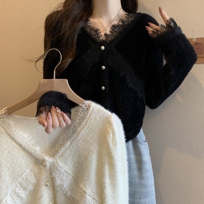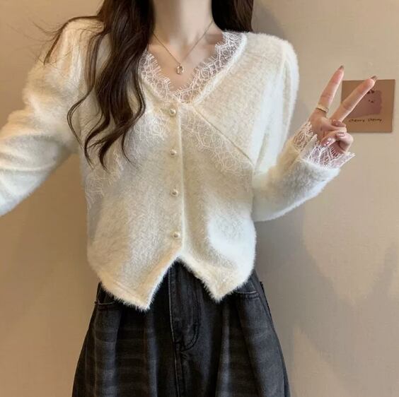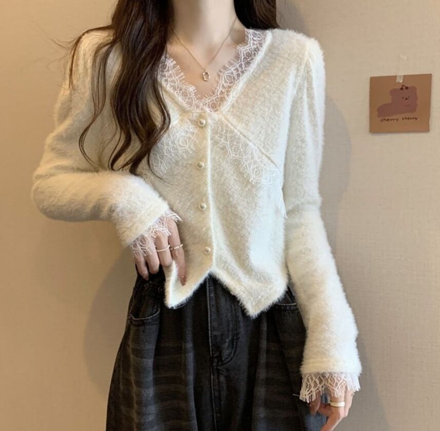 韓国風のウサギの毛皮を使用した、ミルキーでソフトなレディースカーディガン799