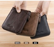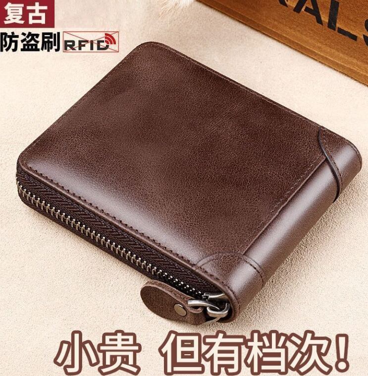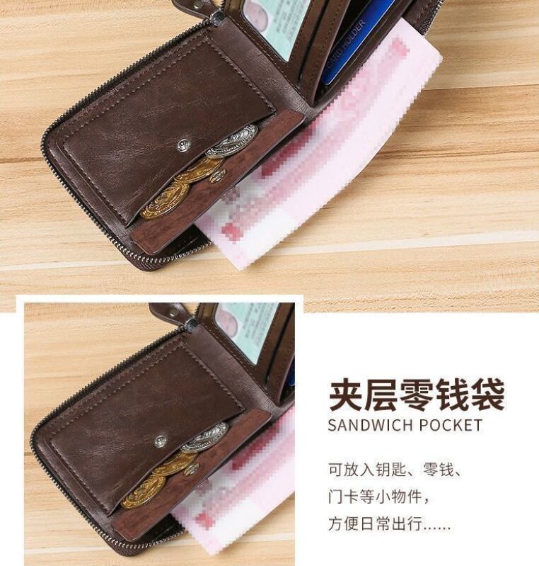 メンズショートジッパーウォレット、多機能カードホルダー、スタイル、耐磁性、高級レザ803