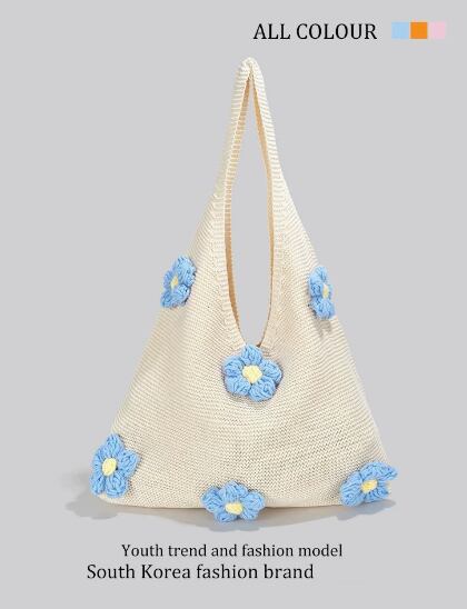 エスニックな花柄ニットレディースバッグ、トレンドの韓国ハンドメ852