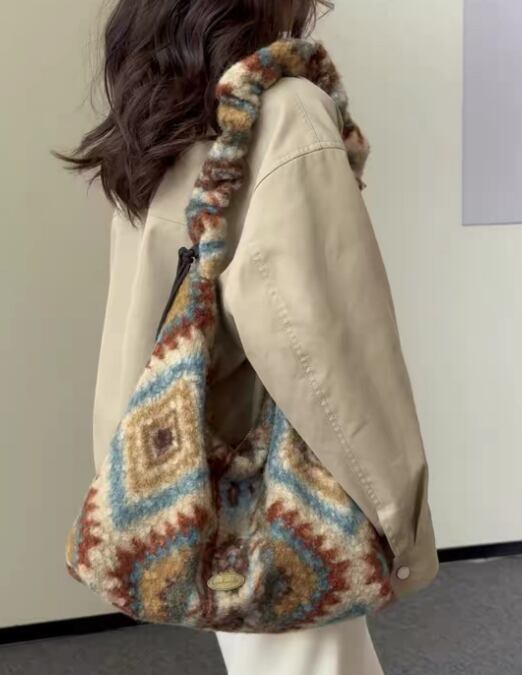 【特徴】 この「エスニックスタイルのウールのプラッシュバッグ〜新しい秋/冬スタイルの調節可855」は、独自のデザインが魅力のアイテムです!秋冬のコーディネートにぴったりな、あたたかみのあるスタイルを演出します。