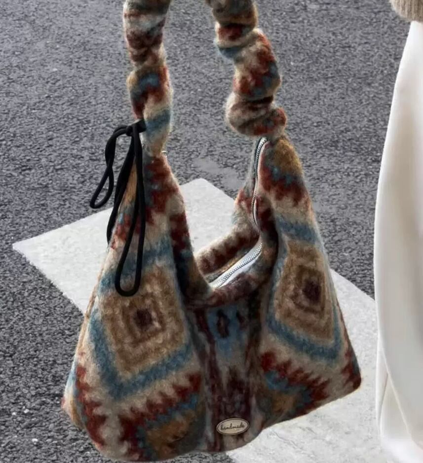 このバッグは、柔らかなウール素材を使用しており、しっかりとした作りながらも軽量で、日常使いに最適です。エスニックな模様が施されており、ファッションに明るさをプラスします。調節可能なストラップは、使い方に応じて、肩掛けや斜め掛けとしても楽しむことができ、機能性も抜群です。また、充分な収納力を備えているため、必要なアイテムをしっかり整理することができ、この秋冬に活躍すること間違いなしです。このバッグを持って、あなたのオリジナルスタイルを表現しましょう!
