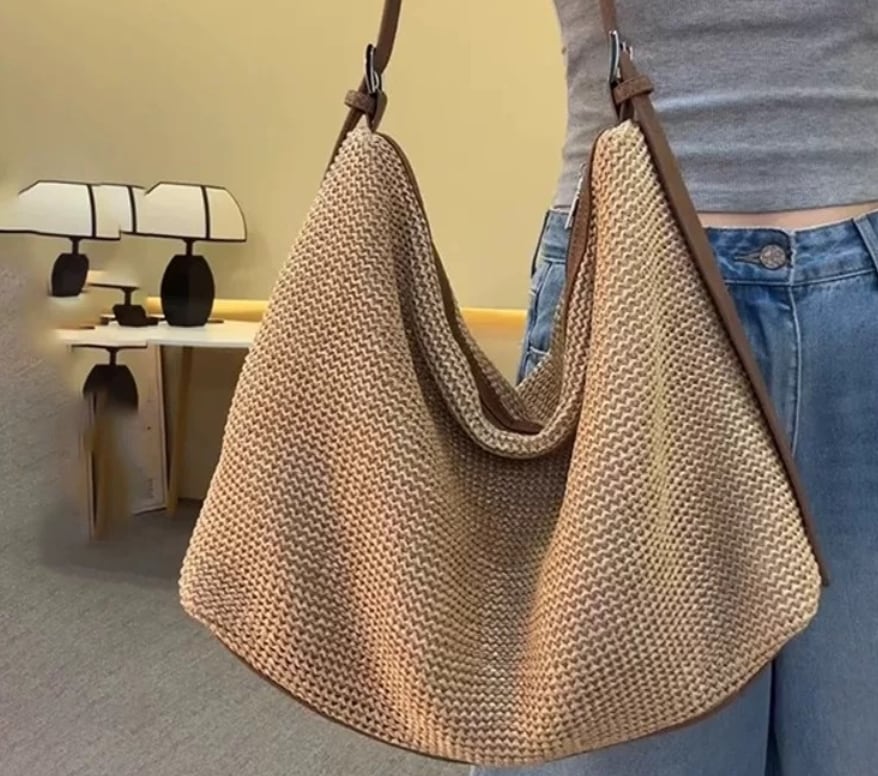 トレンドレディースバッグ、2025年新作麦わら編みバッグ、大容量856