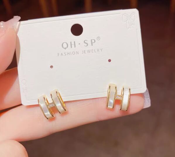 ルンゲのシックでスタイリッシュなシェルH文字スタッドイヤリング。高品質のS925シルバーの針を使用したユニークでミニマリスト890